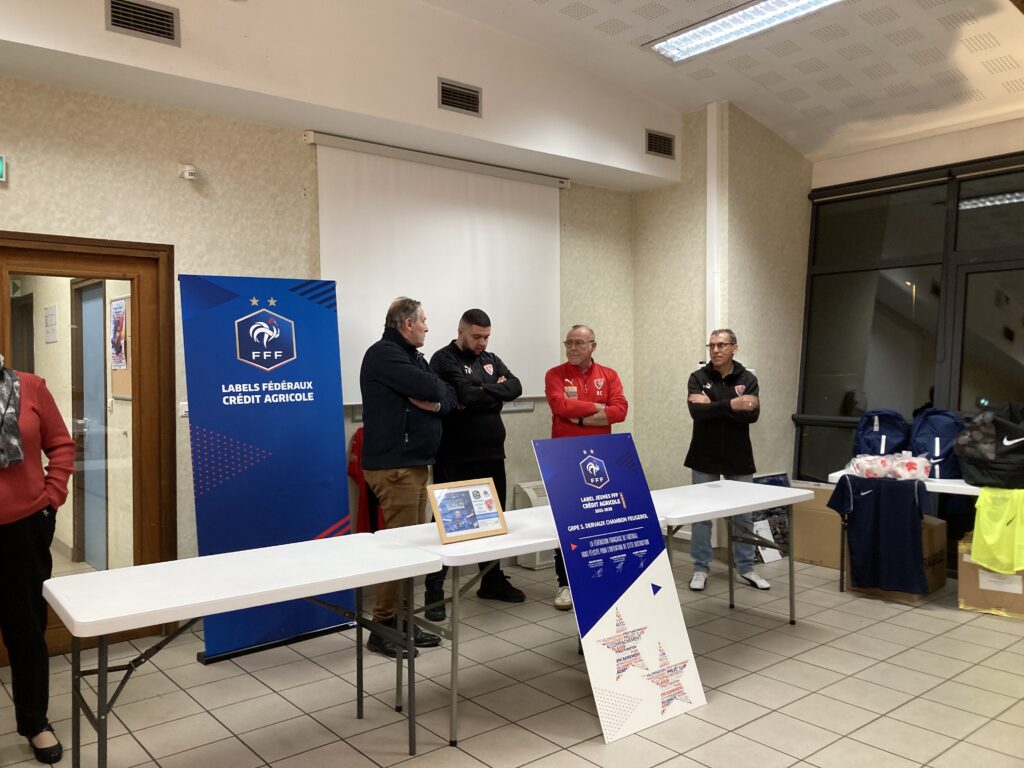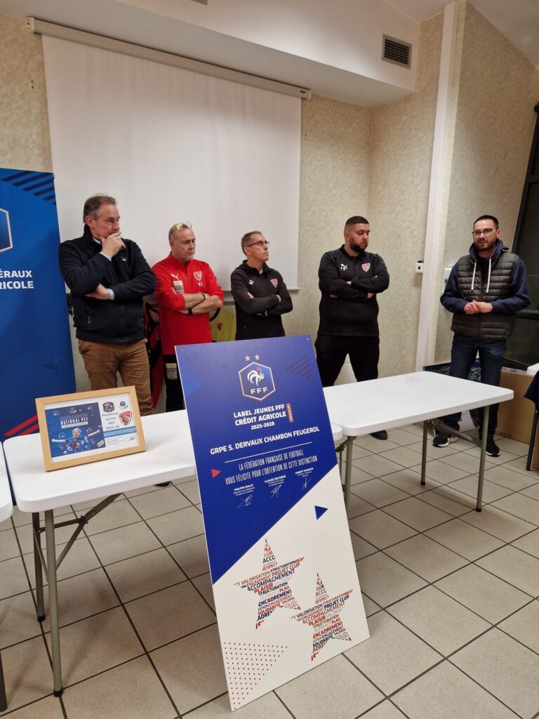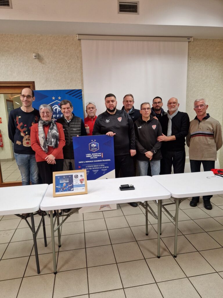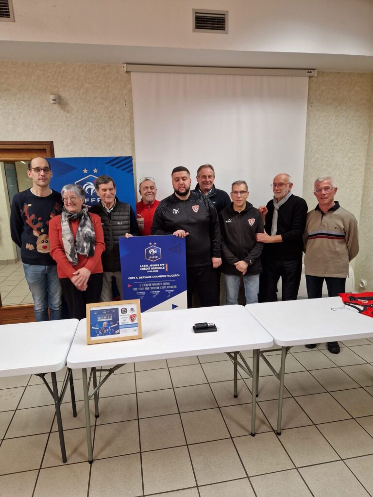 Ce vendredi 19 décembre notre club a eu l’honneur de recevoir le « Label jeunes FFF espoir » remis par le président du District de la Loire et toute son équipe. Ce label récompense le club et l’ensemble de ses éducateurs pour le travail accompli en faveur des jeunes pour les valeurs d’éducation et de respect que l’on transmet. Le club a reçu une dotation d’équipements en faveur des jeunes de la part de la FFF, du District et du Crédit Agricole qui est un partenaire de la Fédération. La municipalité du Chambon Feugerolles nous a fait l’honneur de sa présence et on les a remerciés pour tout le soutien qu’elle nous apporte. La soirée s’est terminée avec une petite collation partagée.