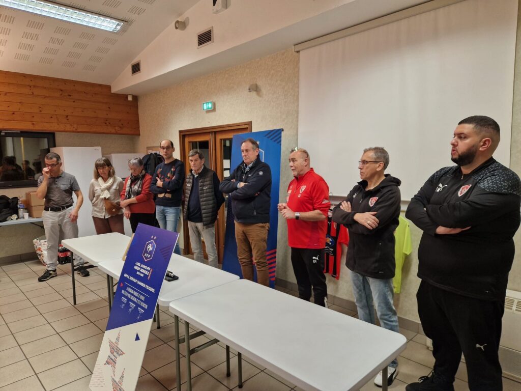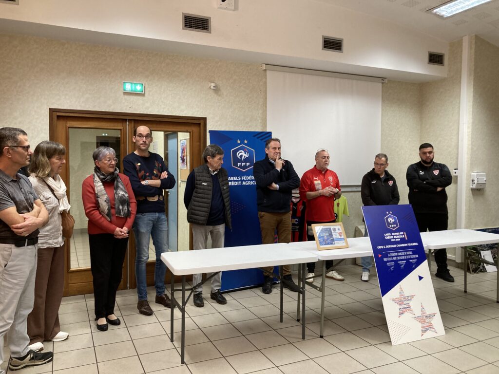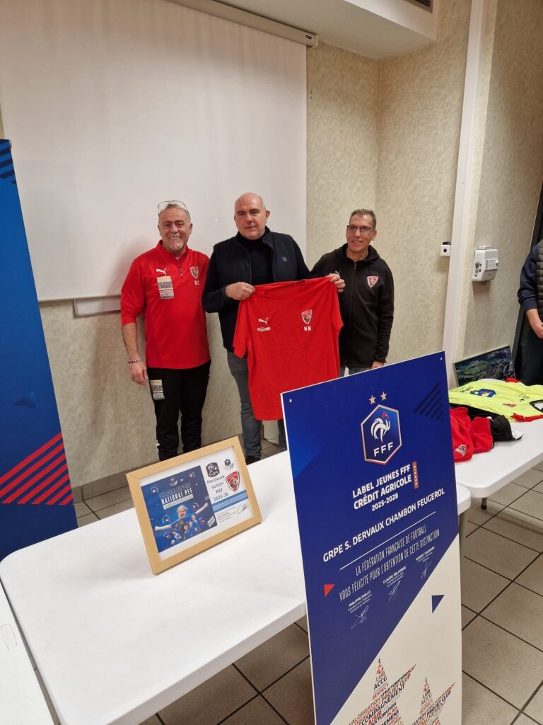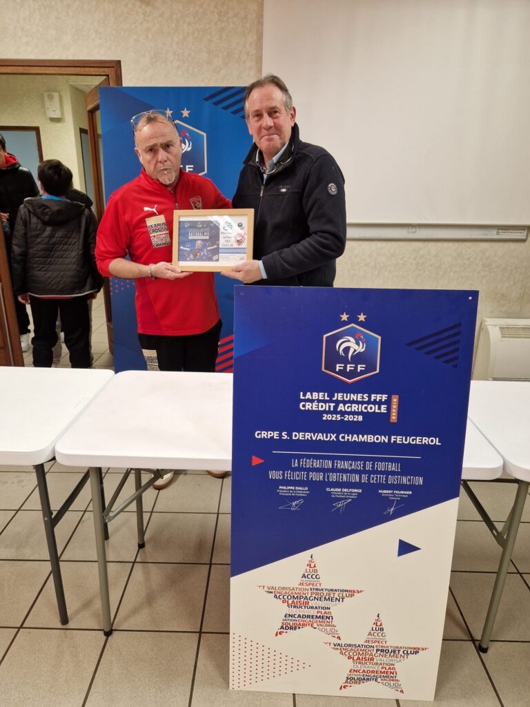 Ce vendredi 19 décembre notre club a eu l’honneur de recevoir le « Label jeunes FFF espoir » remis par le président du District de la Loire et toute son équipe. Ce label récompense le club et l’ensemble de ses éducateurs pour le travail accompli en faveur des jeunes pour les valeurs d’éducation et de respect que l’on transmet. Le club a reçu une dotation d’équipements en faveur des jeunes de la part de la FFF, du District et du Crédit Agricole qui est un partenaire de la Fédération. La municipalité du Chambon Feugerolles nous a fait l’honneur de sa présence et on les a remerciés pour tout le soutien qu’elle nous apporte. La soirée s’est terminée avec une petite collation partagée.