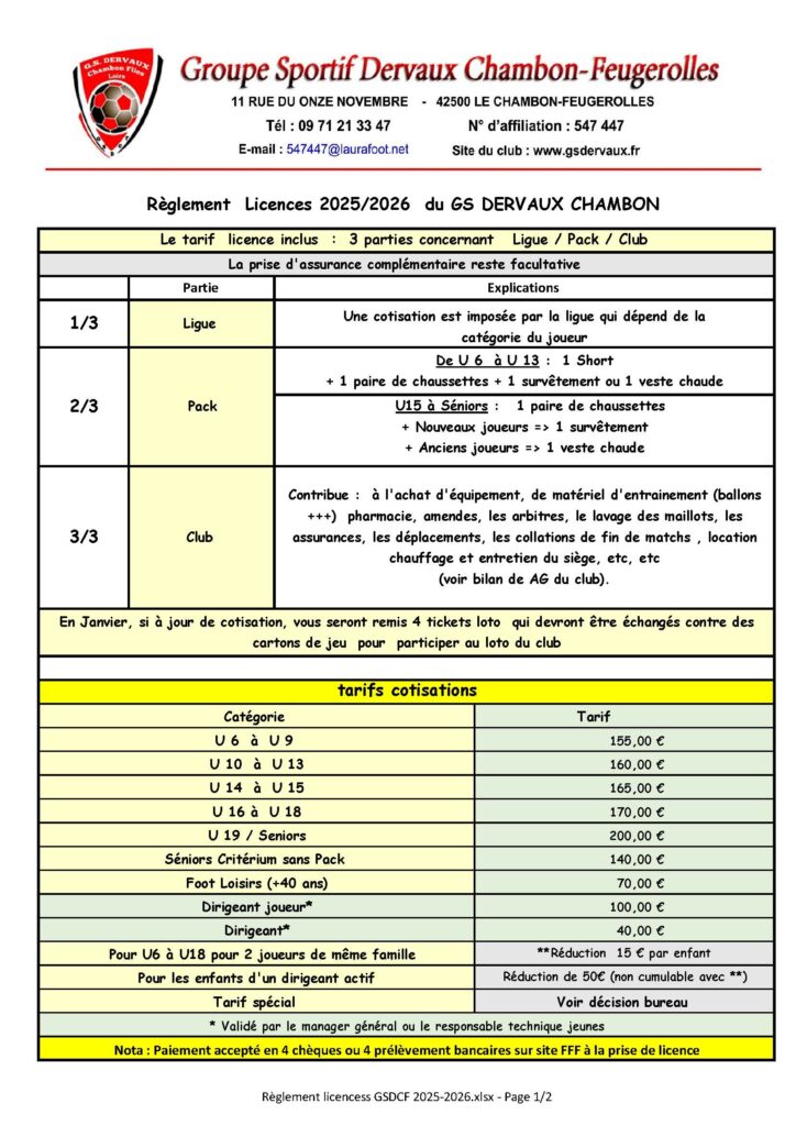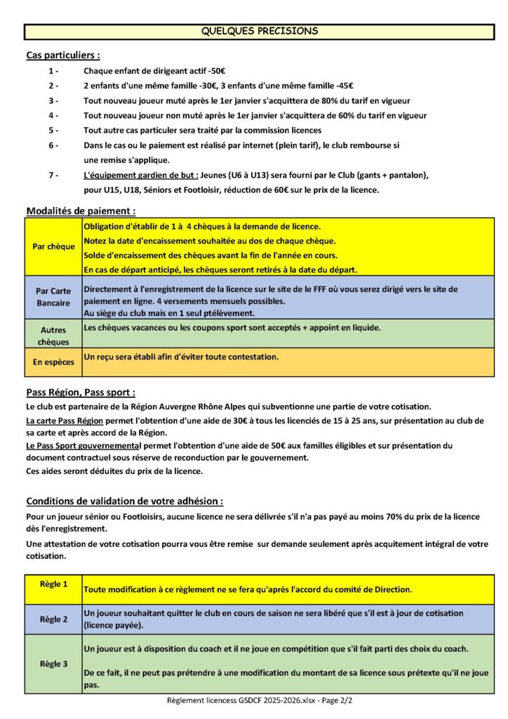 Modalités d’inscription au club pour la saison 2025 / 2026