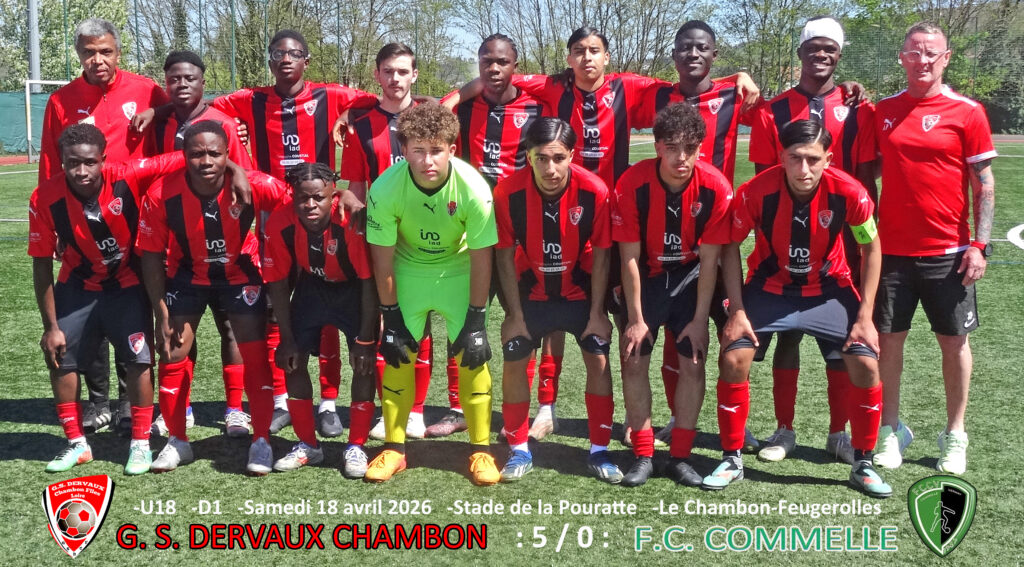 Le GS Dervaux U18 a livré une prestation de très haut niveau ce week-end en s’imposant largement face à Commelle, pourtant deuxième du championnat, sur le score sans appel de 5 buts à 0.